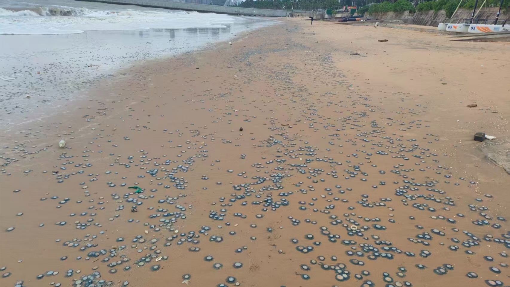 海口西海岸出現(xiàn)大量銀幣水母 專(zhuān)家:有毒,應(yīng)避免主動(dòng)觸碰!